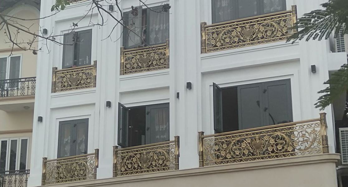 Các hệ lan can đồng đúc nguyên khối tạo thêm điểm nhấn và sự sang trọng về kiến trúc cho ngôi nhà, kết hợp hài hòa với quang cảnh ven Hồ Tây