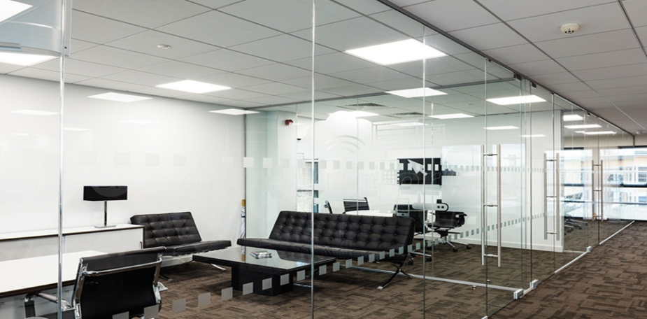 Bên trong tòa nhà việc ngăn các không gian chủ yếu sử dụng vách kính cường lực nhằm tối ưu diện tích sử dụng và tạo không gian thông thoáng hiện đại
